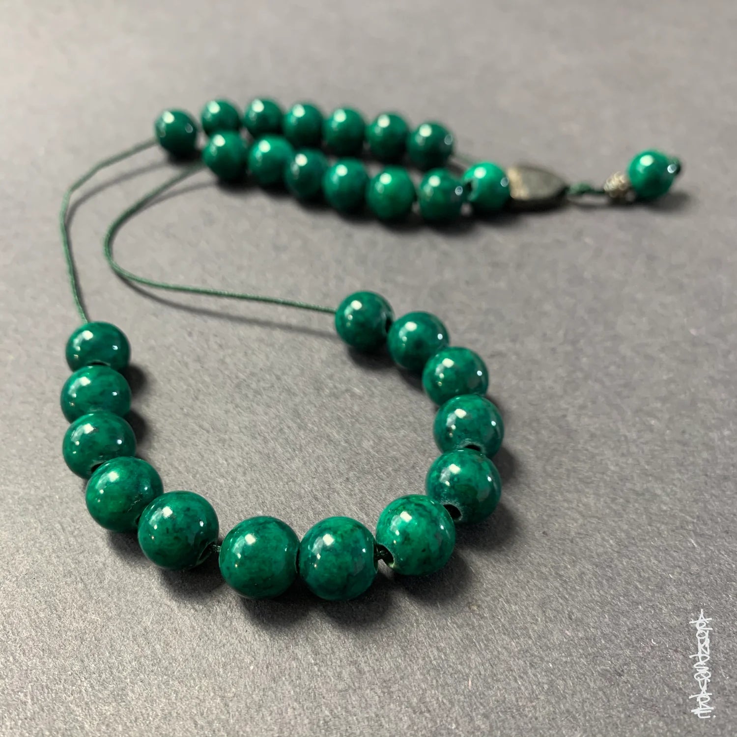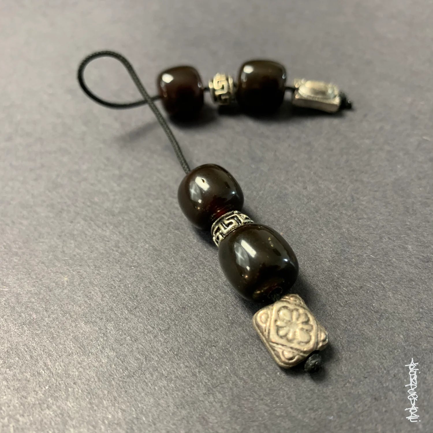 While the structure of the komboloi is well suited to idle play, the cord can become tangled, and the beads can shift around during play, making it difficult to perform sophisticated tricks. In this context, begleri emerged as a much simpler, and ultimately more versatile variation on the theme--a single open strand, with weighted beads at either end. Begleri beads are usually threaded in symmetrical configuration, with equal weighting at either end. Traditional begleri, like komboloi, were often made from semi-precious stones, animal horn, or other valuable materials, and threaded with several beads at either end.