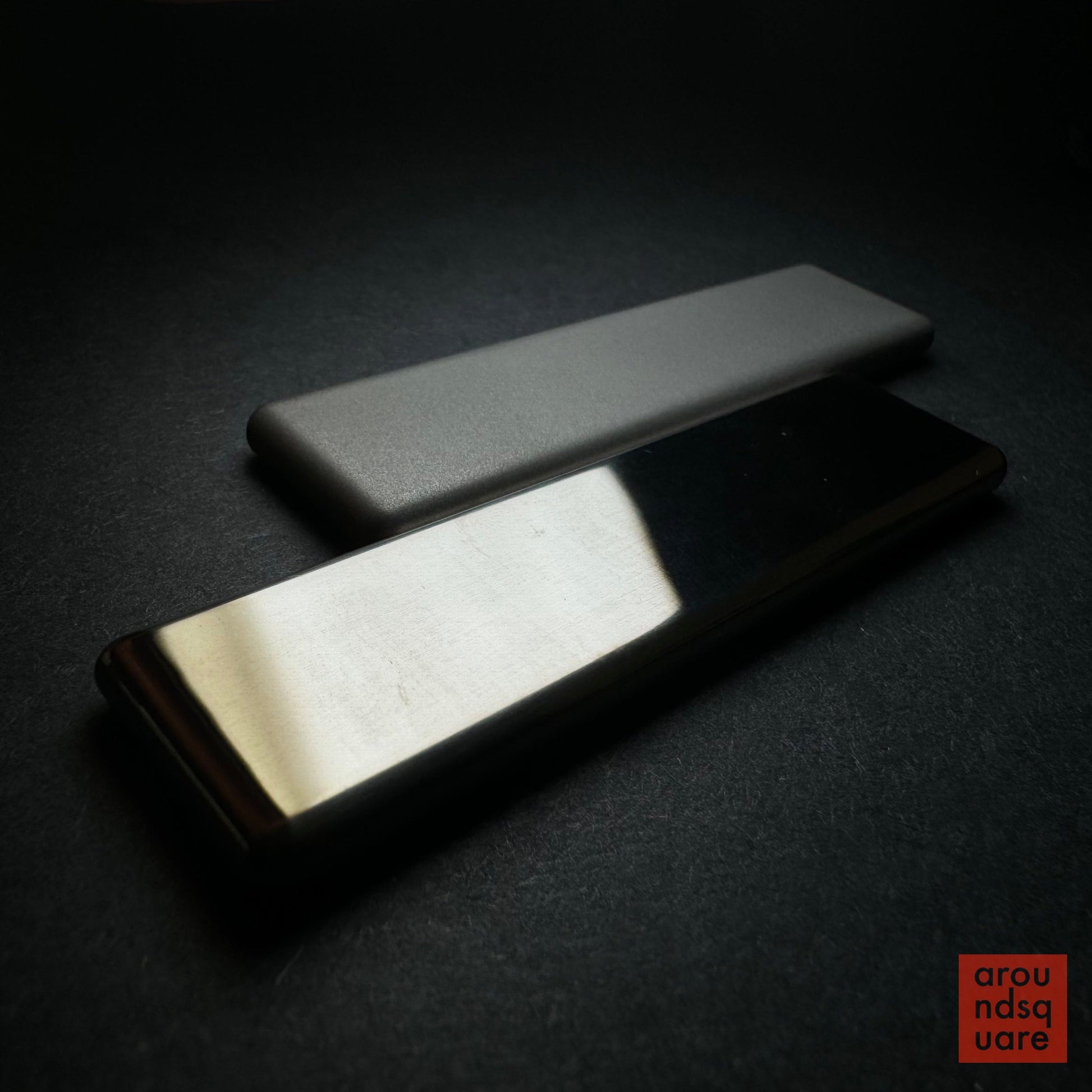 The heavy metal series, being denser than previous Demis, offers enhanced tactile feedback and greater forgiveness in balance and stability. These are available in polished brass, copper, and stainless steel. Each option offers a distinct tactile experience: our polished stainless steel finish provides a firm, grippy feel perfect for precise manipulations, while our sandblasted stainless steel glides smoothly through the fingers. Our copper and brass Demi Planks offer a warmer, more colourful option for those who appreciate both aesthetics and character. NOTE that the copper (especially, but also brass to a lesser extent) is a softer metal, and will pick up scratches quickly, and in addition, neither the brass nor copper are passivation treated, meaning they have already begun to patina and may have a darker colour or slight patchiness to the surface colour upon receipt. Those wanting a pristine polished surface are best off choosing the stainless steel.