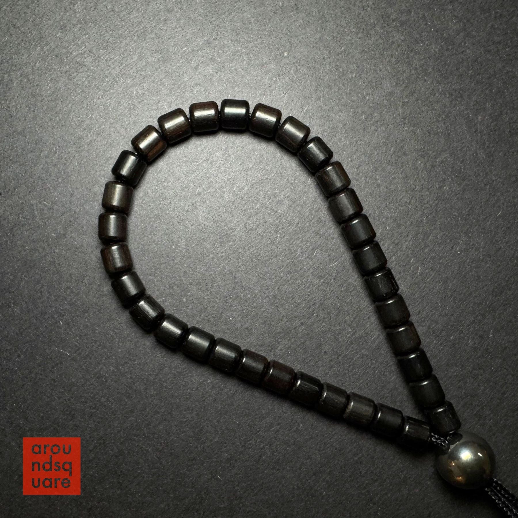 The unique setup of the MKUltras allows them to be worn like mala beads, or carried discretely in the pocket. They adjust by means of a simple friction fit through the larger "Boss" bead closure. Although the design is exceedingly simple, we're fairly confident you won't find anything quite like them around. This is a knotless system, and does not require any special lock bead. The cord is simply compressed when threaded through the Boss bead, providing a reliable, secure fastener, that is easy to adjust when needed.